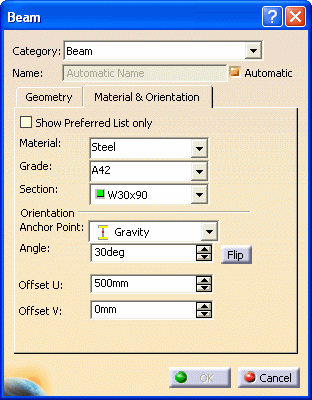 This task explains how you can define the orientation properties of a beam or pillar. See also Defining Material for Profiles. | |