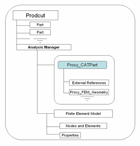 | In the illustration below, the self-sufficient Proxy_CATPart manages all the missing geometries for constraining and mesh purposes. | |