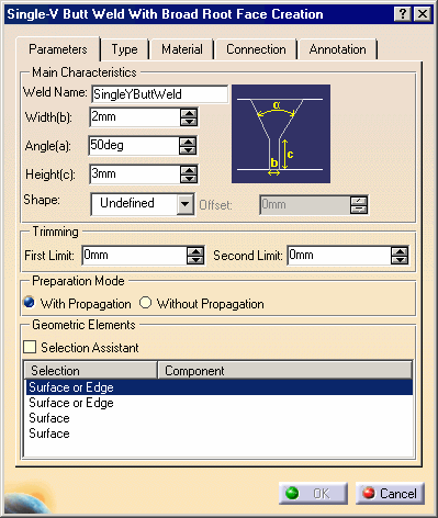 Click the Single-V Butt Weld with Broad Root Face