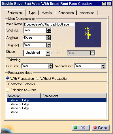 Click the Double-Bevel Butt Weld with Broad Root Face