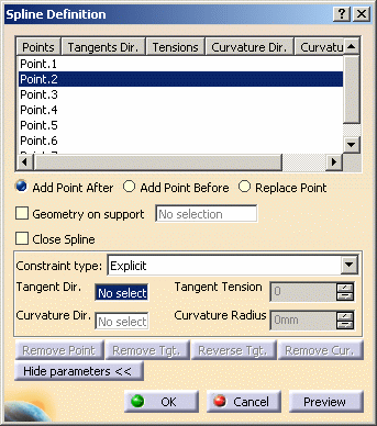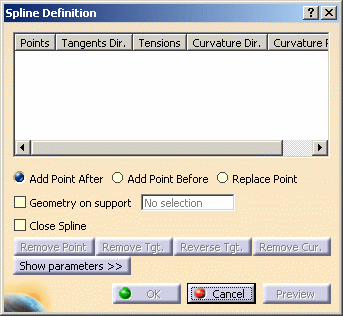 | The Spline Definition dialog box appears. |