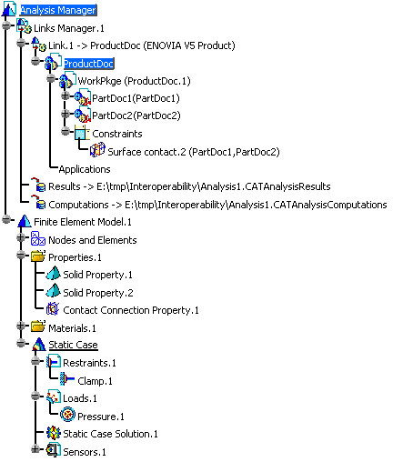 This task shows you how to store analysis data in ENOVIA, using VPM Navigator. You see also how to store the documents pointed by a CATAnalysis document (such as: CATProduct, CATAnalysisComputations and CATAnalysisResults). First you create an analysis from a product saved in ENOVIA either in Workpackage mode or in Explode mode and save it in ENOVIA. Then you retrieve documents pointed by a CATAnalysis. |