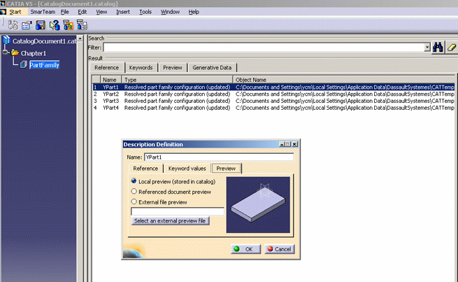 - once your catalog has been sent to CATIA V5, select the
