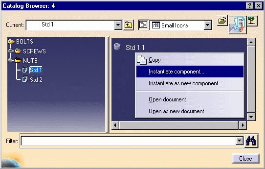 Instantiating in CATIA V5 a Cataloged Part in an
